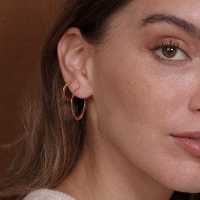 Des créoles ouvertes à l’arrière avec un diamètre parfait et une épaisseur qui leur donne du style. Le doré brossé leur confère un look chic et intemporel, idéal pour glisser dans toutes nos tenues, du bureau au week-end.