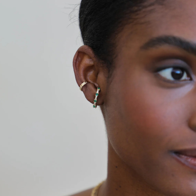 • Pour sa forme courbée façon bague d’oreille qui habille tout le lobe.