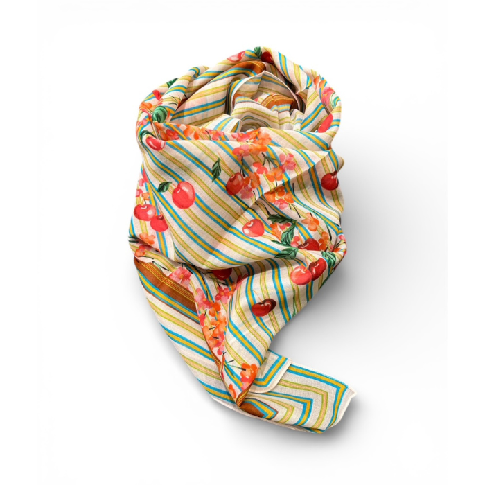 Carré Cerise Vert : Un grand foulard plein de fraîcheur !