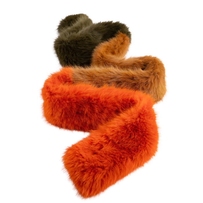 Cette écharpe en fausse fourrure, c’est un concentré de bonheur et de moelleux à en faire pâlir les plaids ! Tricolore et ultra douce, elle mêle avec brio olive, caramel et orange pour réveiller n’importe quelle tenue. Selon l’humeur (ou la veste du jour), on choisit la couleur qu’on veut mettre en avant. Résultat : un look qui change sans effort, et une sensation de cocon permanent.