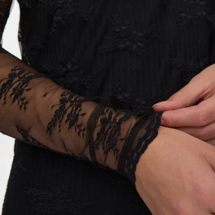 Ce Top Natalia joue la carte de la dentelle délicate et des broderies ton sur ton pour créer une silhouette à la fois affirmée et sensuelle. Manche longue, coupe seconde peau et transparence : il s’adapte autant aux looks du quotidien qu’aux soirées stylées.