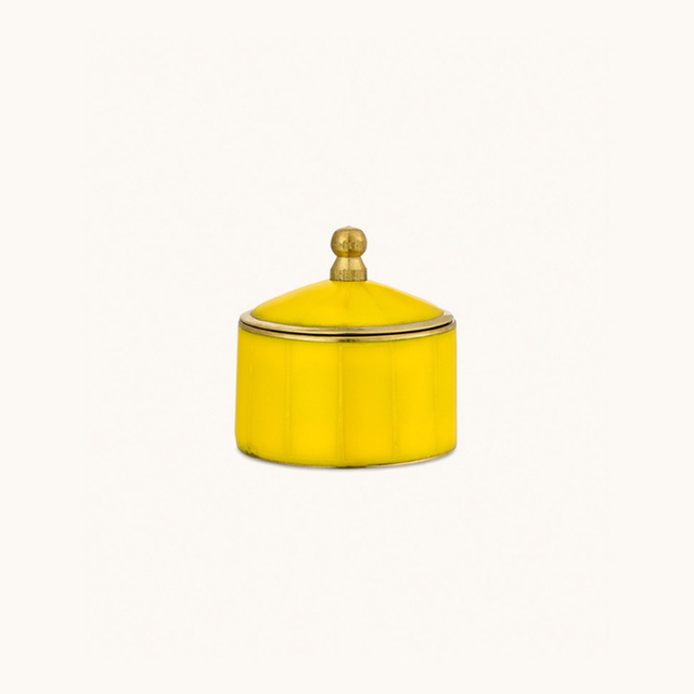 Cette boîte Bailey jaune apporte un vrai souffle de bonne humeur dans notre intérieur. Avec sa forme arrondie inspirée d’un chapiteau et son bouton doré, ce petit écrin joue la carte du design ludique tout en restant facile à intégrer dans notre déco.