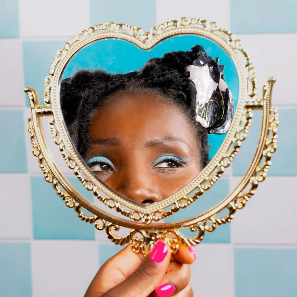 Avec son air faussement sage et son pelage noir et blanc tout doux, ce chat dodu débarque dans nos cheveux avec beaucoup (trop) de style. On fond pour son regard espiègle et sa forme bien dodue, parfaite pour agripper toutes les crinières, qu’elles soient fines ou bien touffues.