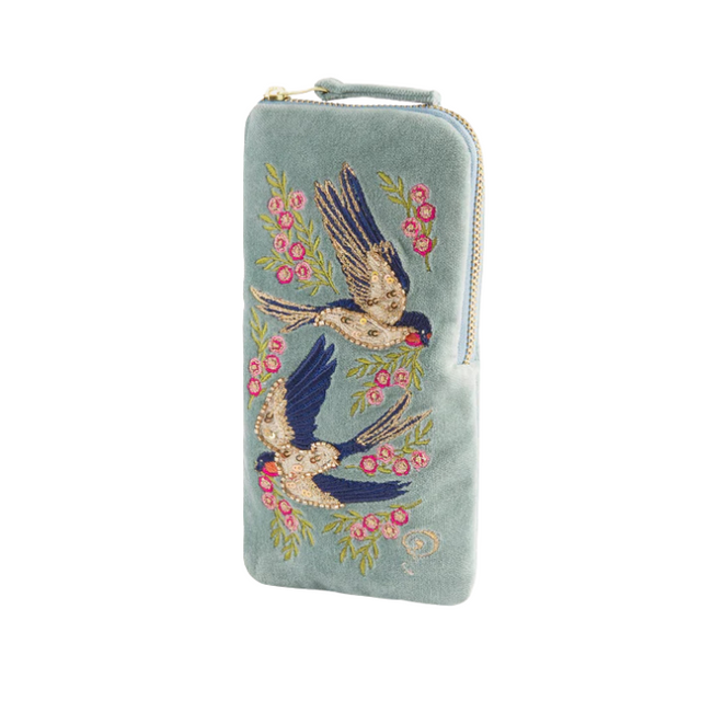 Un peu de poésie dans le sac, ça ne fait jamais de mal. Cet étui brodé d’hirondelles au vol gracieux mêle douceur, artisanat et esprit rêveur. On y range ses lunettes, et on y ajoute une bonne dose de charme.