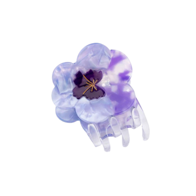 The pretty pansy pattern is made of acetate and its teeth too, our ears just have to hold on tight.