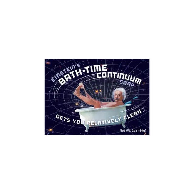 The clever inscription "Bath Time Continuum Soap" invites us to explore the dimensions of cleanliness.