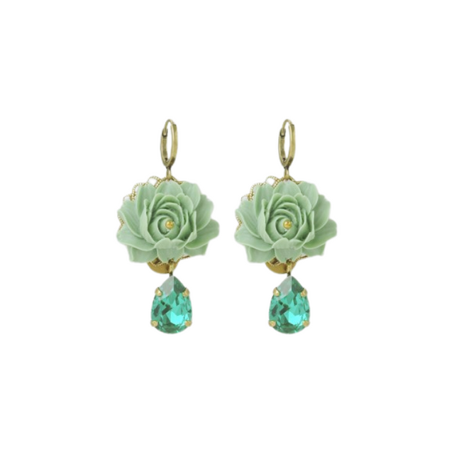 We fell for this pair of earrings decorated with a pink pearl and a yellow flower.