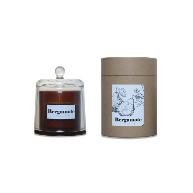 Bougie parfumée à la bergamote dans un écrin de douceur.