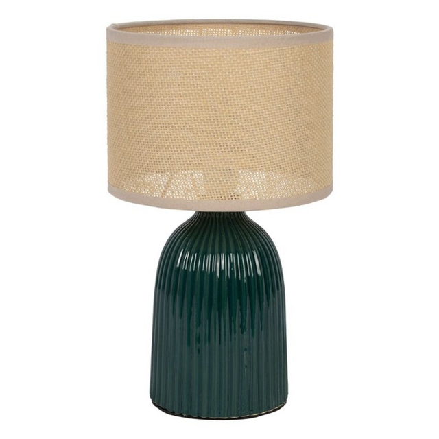 Avec son pied en céramique vert émeraude nervuré et son abat-jour en lin texturé, la lampe Essence Émeraude joue la carte du chic assumé. Son vert profond capte la lumière et ajoute une pointe de raffinement, du salon à la chambre en passant par le bureau.
