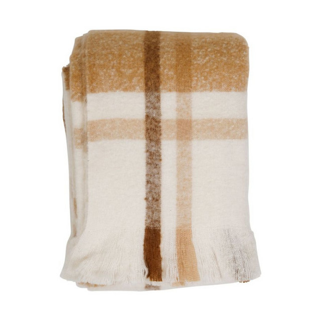 Pas un simple plaid. Un vrai mood-setter. Avec son motif tartan twisté et son coloris caramel ultra gourmand, il coche toutes les cases du confort chic. Le genre de pièce qui donne envie de traîner à la maison comme si c’était un lodge scandinave.