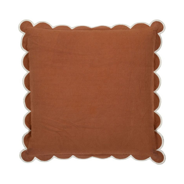 Simple en apparence, mais avec juste ce qu’il faut de twist : ce coussin terracotta mise tout sur sa couleur chaude et sa bordure festonnée brodée. Résultat ? Il habille un canapé, un lit ou un fauteuil sans effort, et devient l’allié cosy qu’on déplace de pièce en pièce.