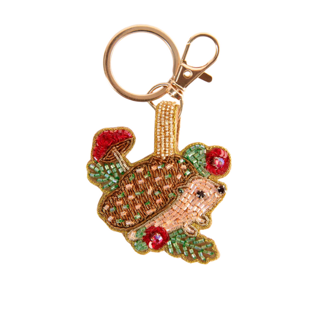 On craque pour ce petit hérisson qui nous emmène direct en balade automnale ! Ses perles scintillantes remplacent les épines et lui donnent un côté luxe subtil, tandis que ses champignons rouges et ses feuillages verts racontent une vraie histoire de forêt miniature sur nos clés.