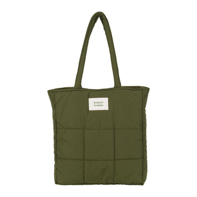 Pratique, matelassé, stylé… bref, le tote bag qu’on attendait. Avec son coloris olive hyper facile à assortir et son étiquette brodée "bonjour bonjour", il met de la bonne humeur jusque dans les trajets les plus basiques. Entre ses anses molletonnées ultra confort, sa poche plaquée intérieure et sa fermeture aimantée, il coche toutes les cases du parfait compagnon du quotidien.