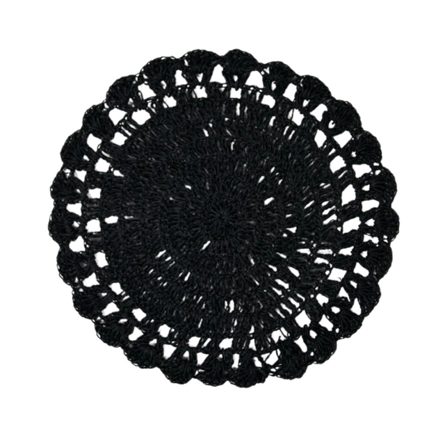Vous l'aurez compris, avec ces sets de table en raphia noir, chaque repas prend un petit air de fête. Leur forme ronde en rosace stylisée & bordure ajourée façon crochet, apportent de la texture et du charme aussi bien aux déjeuners du quotidien qu’aux grandes tablées du week-end.