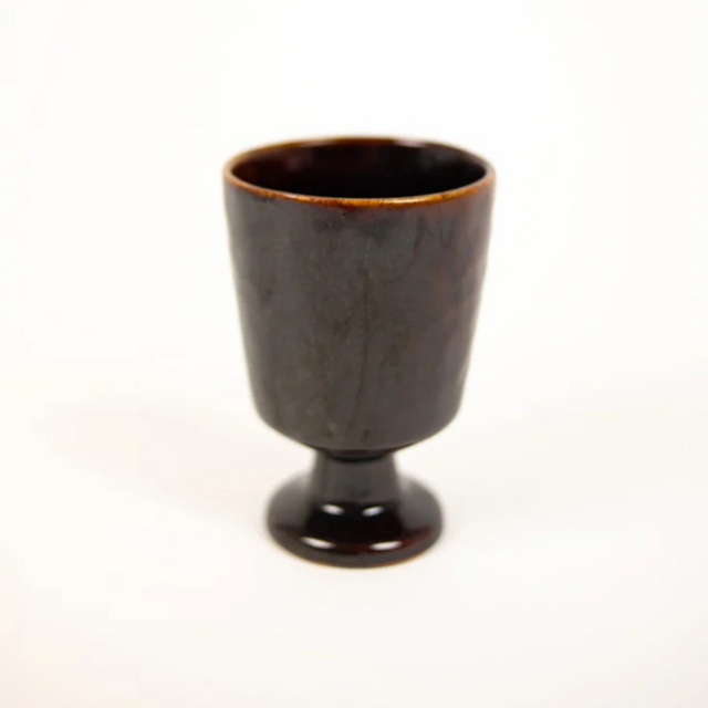 Le verre à pied , c’est l’élégance rétro qui débarque sur la table. En grès comme les mugs de nos grands-mères, il se distingue avec sa forme élancée et sa glaçure réactive qui crée des nuances uniques de brun glacé. Résultat : chaque verre devient une petite pièce collector.