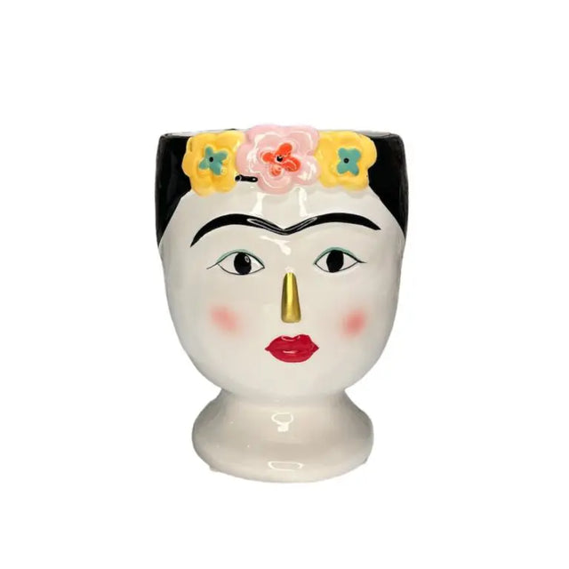 Indeed, on the front of the vase, there is the face of Frida Kalho which we recognize in particular with her characteristic eyebrows as well as her flower crown, in relief.
