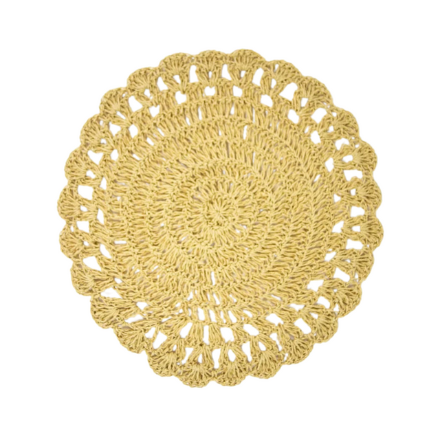 Vous l'aurez compris, avec ces sets de table en raphia crème, chaque repas prend un petit air de fête. Leur forme ronde en rosace stylisée & bordure ajourée façon crochet, apportent de la texture et du charme aussi bien aux déjeuners du quotidien qu’aux grandes tablées du week-end.