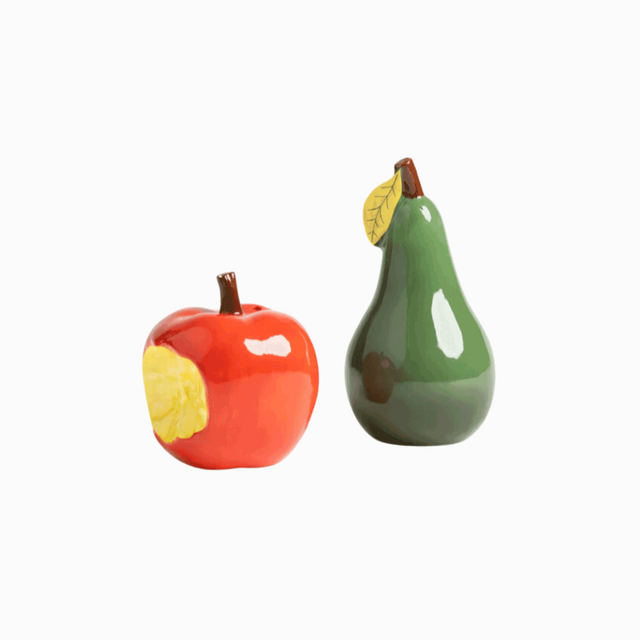 Alors on opte pour une salière et un poivrier stylés et hors du commun en forme de pomme et de poire.