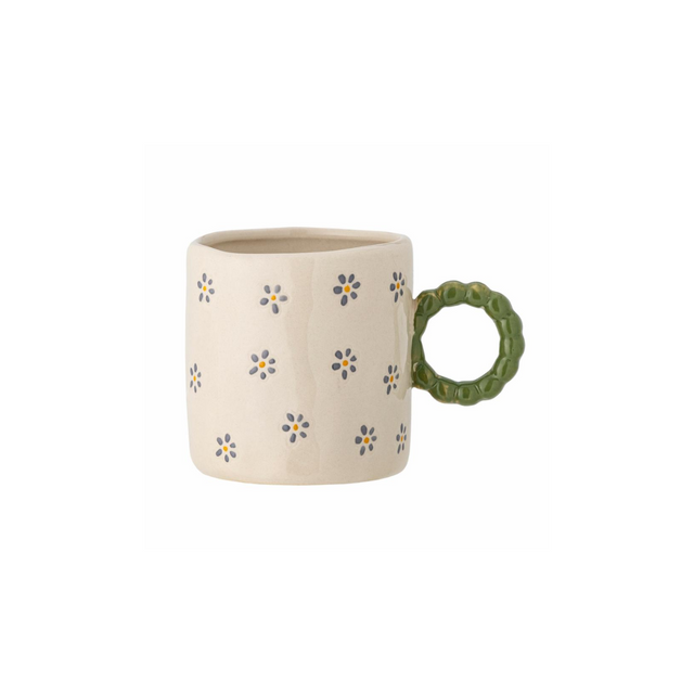 Big crush on this stoneware cup with a beautiful irregular shape and hand-painted flowers.