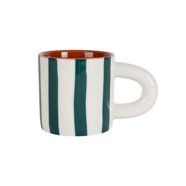 Exit la routine du mug triste, bonjour la tasse qui a du caractère ! Avec ses rayures vert & blanc ultra fraîches et son intérieur brun qui réchauffe l’ambiance, chaque gorgée devient une petite mise en scène digne d’un brunch branché.