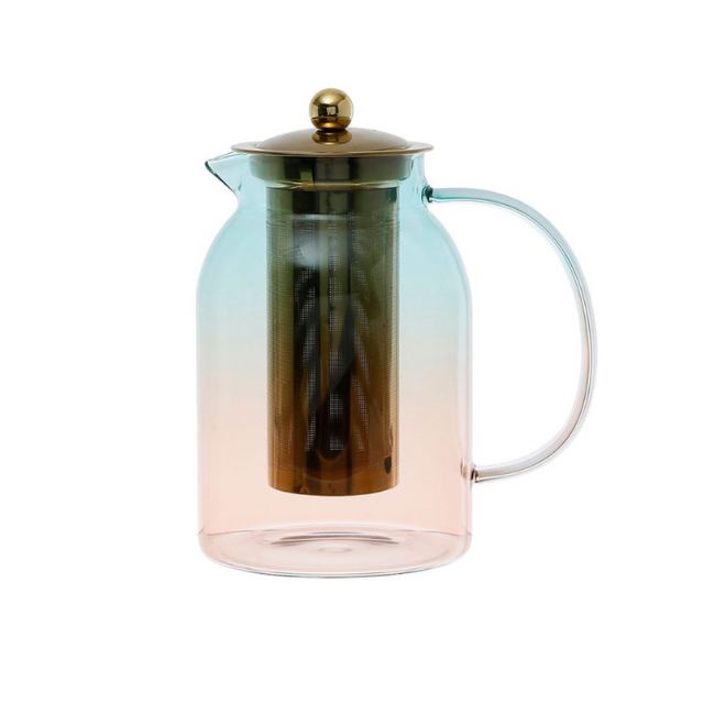 On adore cette théière en verre organique pour sa couleur transparente et son dégradé subtil qui illumine notre moment thé. Son filtre et capuchon en acier inox légèrement cuivré, associés à une poignée toute en rondeur, font de chaque infusion un plaisir visuel et pratique.