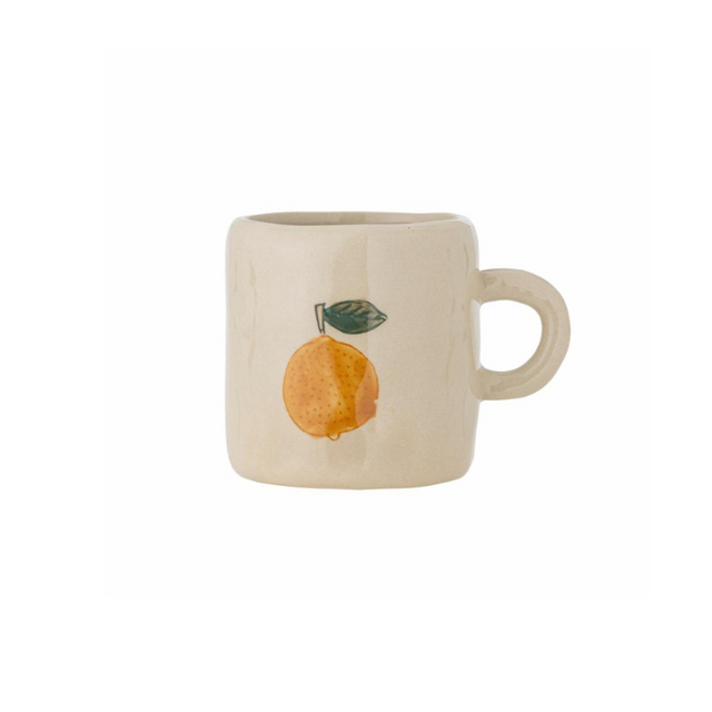 Une mignonnerie de tasse en grès blanc cassé, faite à la main, qui cache un twist aussi joli que rafraîchissant : une petite orange nichée au fond. Minimaliste à l’extérieur, pleine de charme à l’intérieur, elle apporte une vraie dose de bonne humeur à nos pauses café ou thé.