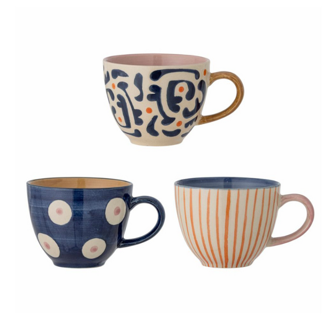 Chaque tasse Eviaya est une petite œuvre peinte à la main, elle décline ses motifs dans des tons joyeux de rose, orange, bleu ou brun, pour égayer nos pauses café comme nos étagères. Avec ses variations de design, à motifs, à pois ou à rayures, c’est la touche artistique et vivante qu’on aime glisser dans notre quotidien.