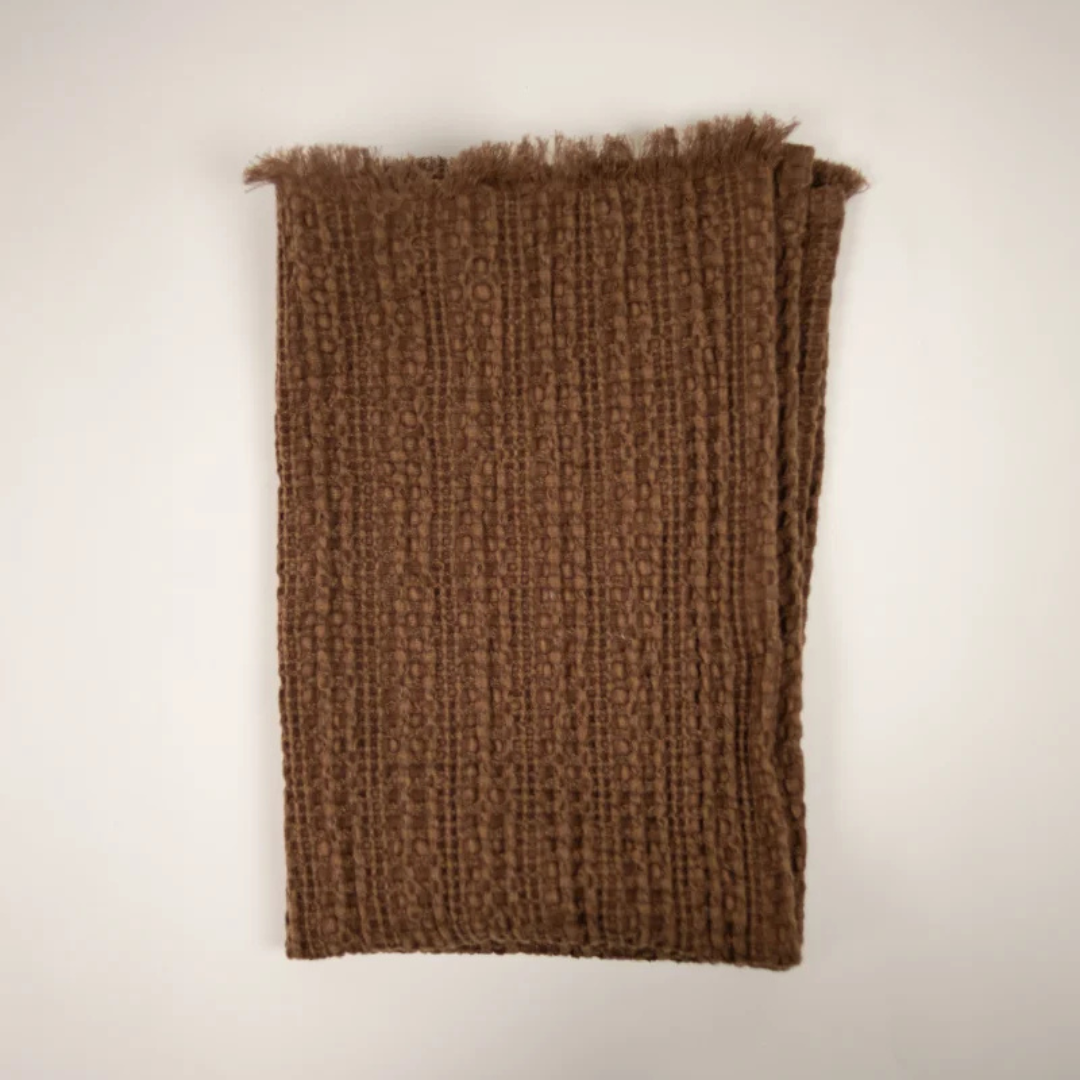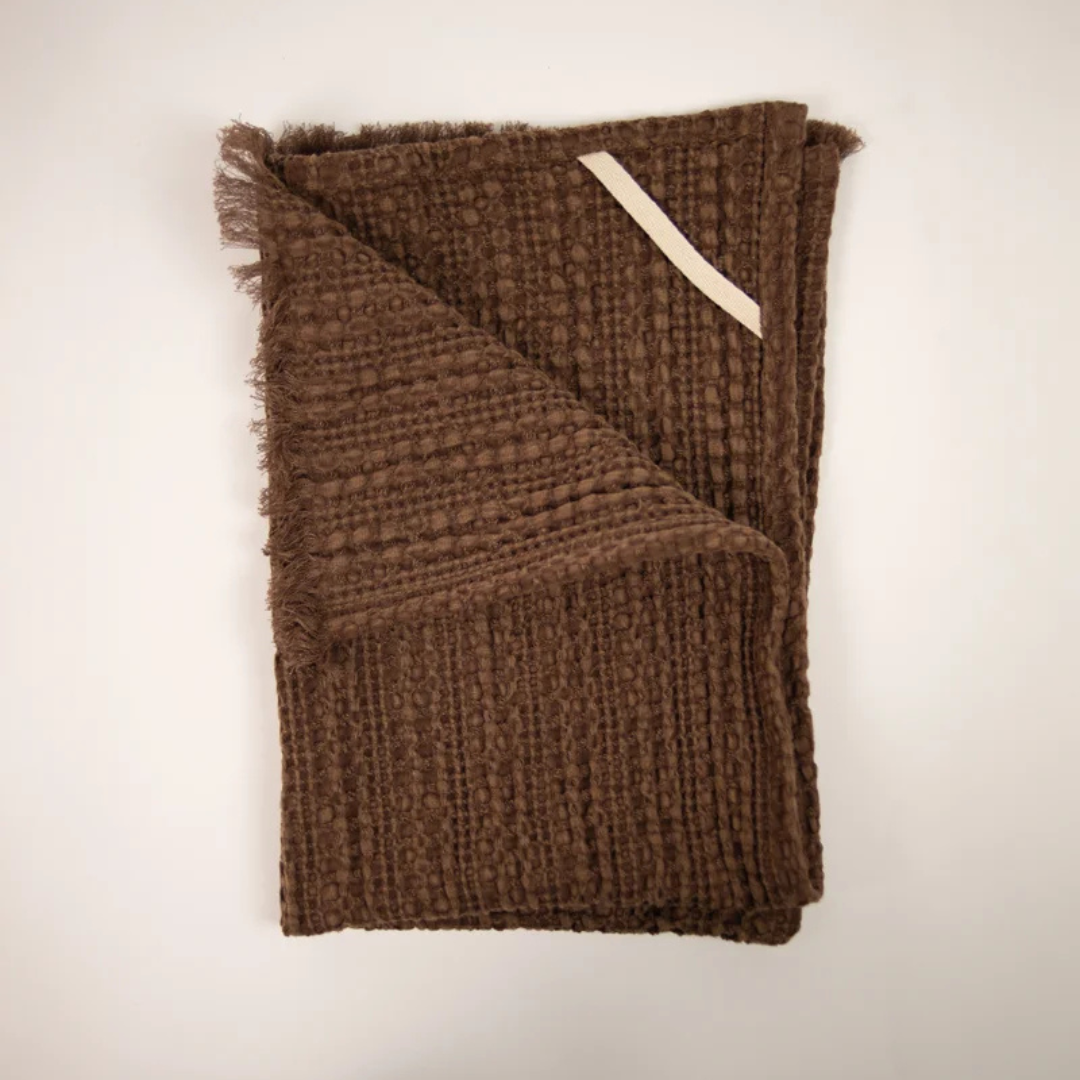 Le torchon Elise Brun, c’est l’allié malin qui passe de la cuisine à la salle de bains sans perdre son charme. En coton gaufré, doux et moelleux, il est aussi pratique qu’agréable à utiliser. Sa teinte brun profond et ses petites franges en bas en font un accessoire qui a clairement plus de caractère qu’un torchon classique.