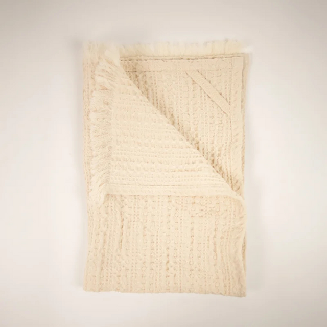 Ce torchon c’est la version douce et lumineuse du linge de maison qu’on adore utiliser. En coton gaufré moelleux, il s’adapte aussi bien à la cuisine qu’à la salle de bains. Sa teinte crème apaisante et ses franges en bas lui donnent un côté déco assumé, et grâce à sa petite accroche au dos, il se suspend facilement là où on en a besoin.